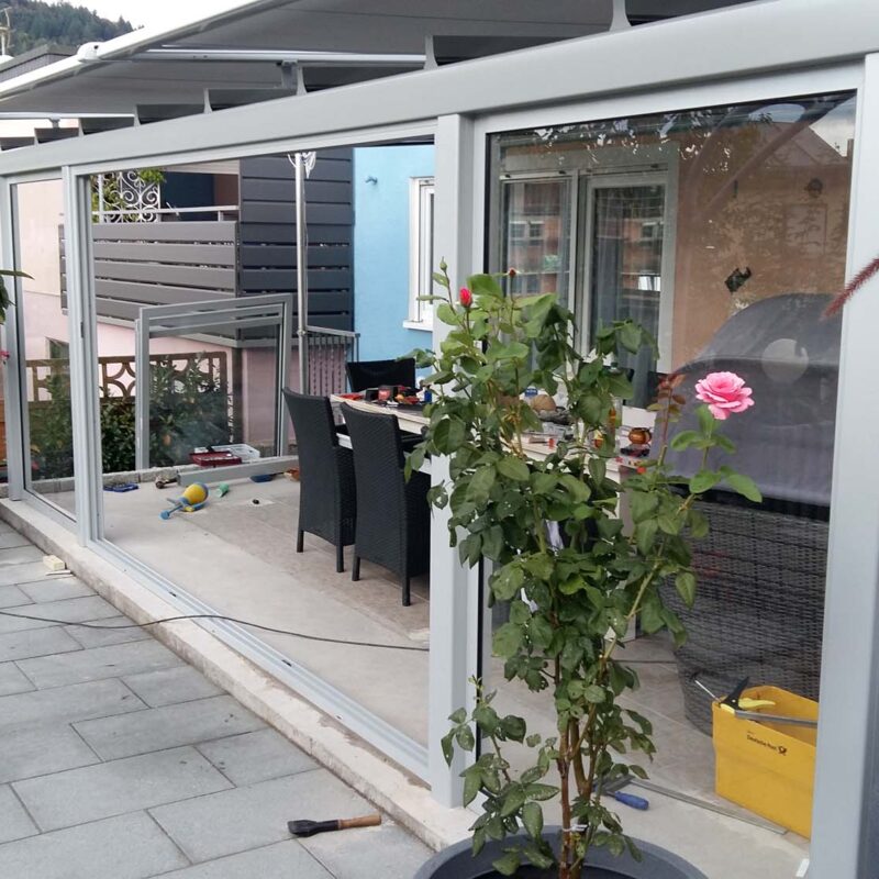 Errichtung eines stilvollen Terrassendachs mit Glas- und Markisenkombination