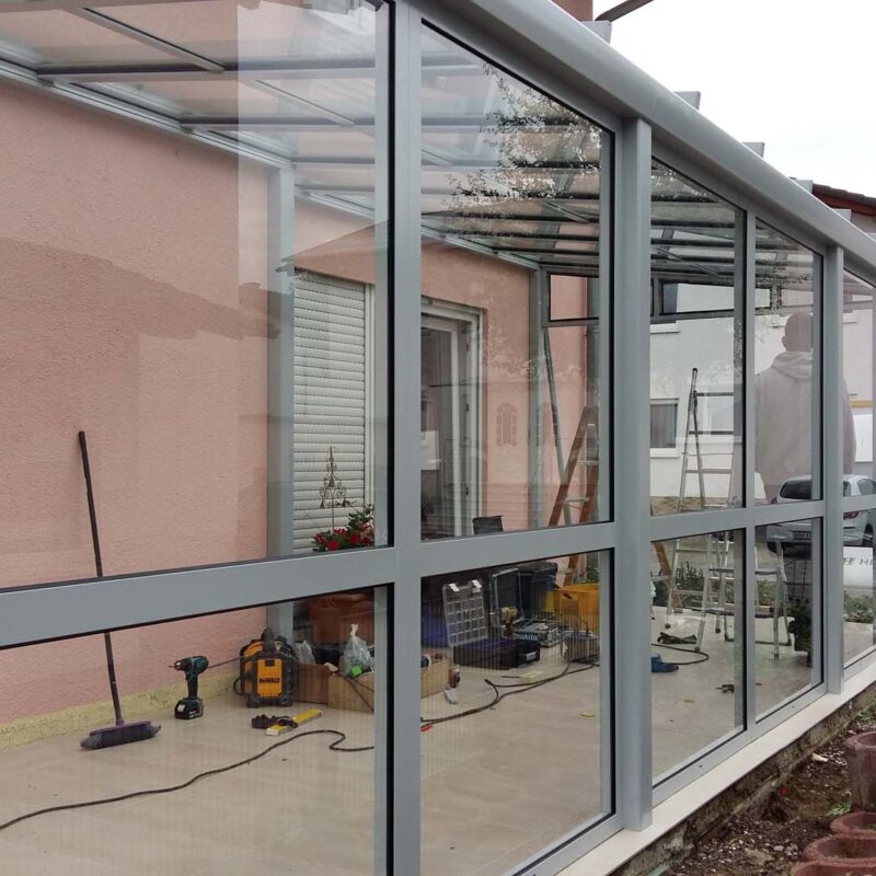 Errichtung eines modernen Terrassen-Wintergartens mit Aluminium-Glas-Konstruktion