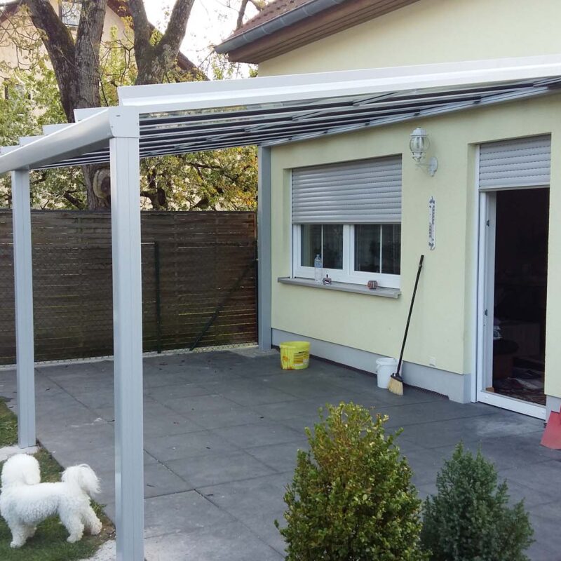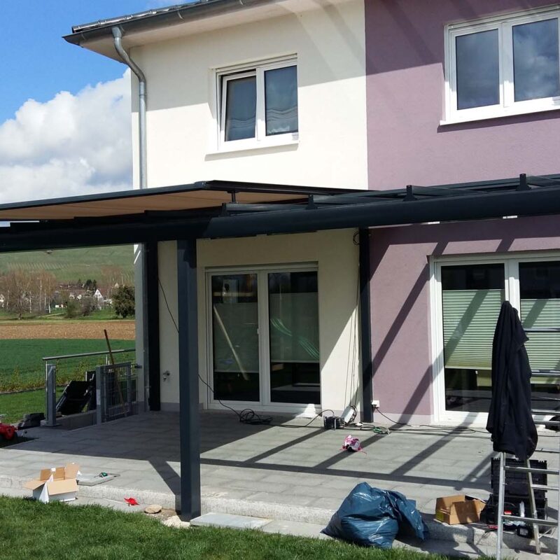 Errichtung einer an der Fassade montierten Aluminium-Pergola