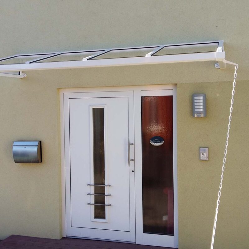 Installation eines modernen Glasvordachs für Eingangsbereiche