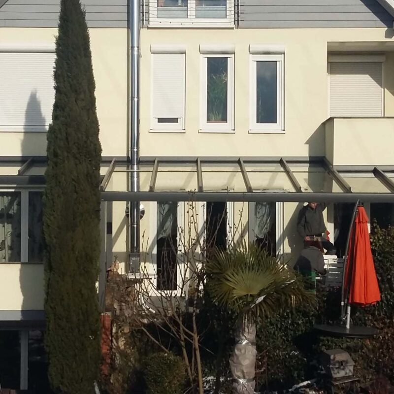 Installation eines großflächigen Glasvordachs für die Terrasse
