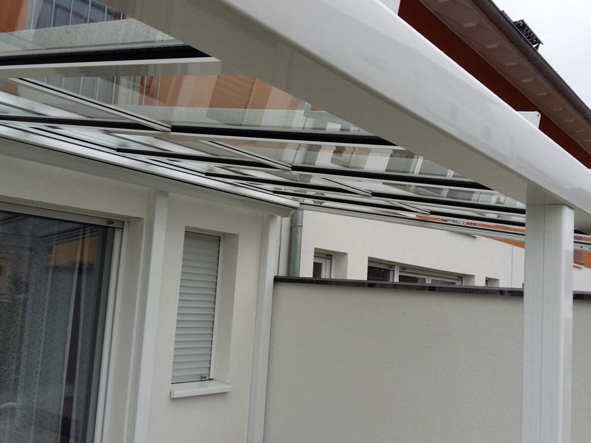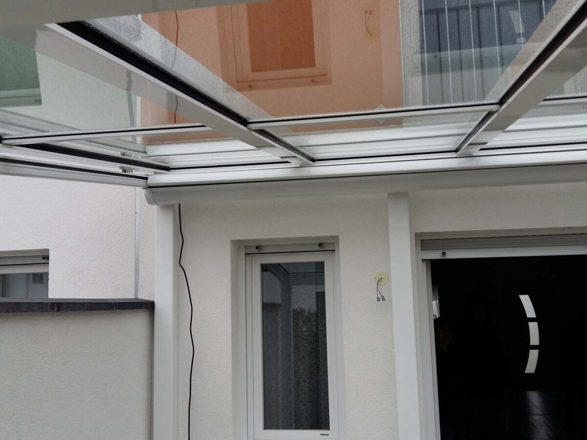 Für dieses Bauvorhaben wurde ein stilvolles Terrassendach realisiert, das durch eine Kombination aus transparenten Glasdachpaneelen und einem integrierten Markisensystem besticht. Die Konstruktion besteht aus einem hochwertigen, pulverbeschichteten Aluminiumrahmen, der sowohl Langlebigkeit als auch eine moderne Ästhetik gewährleistet. Die unter dem Glasdach montierte Markise bietet flexiblen Sonnenschutz und kann bei Bedarf elektronisch gesteuert werden. Diese durchdachte Lösung ermöglicht es, das Terrassendach optimal an die Lichtverhältnisse anzupassen und so eine komfortable Nutzung des Außenbereichs zu gewährleisten.